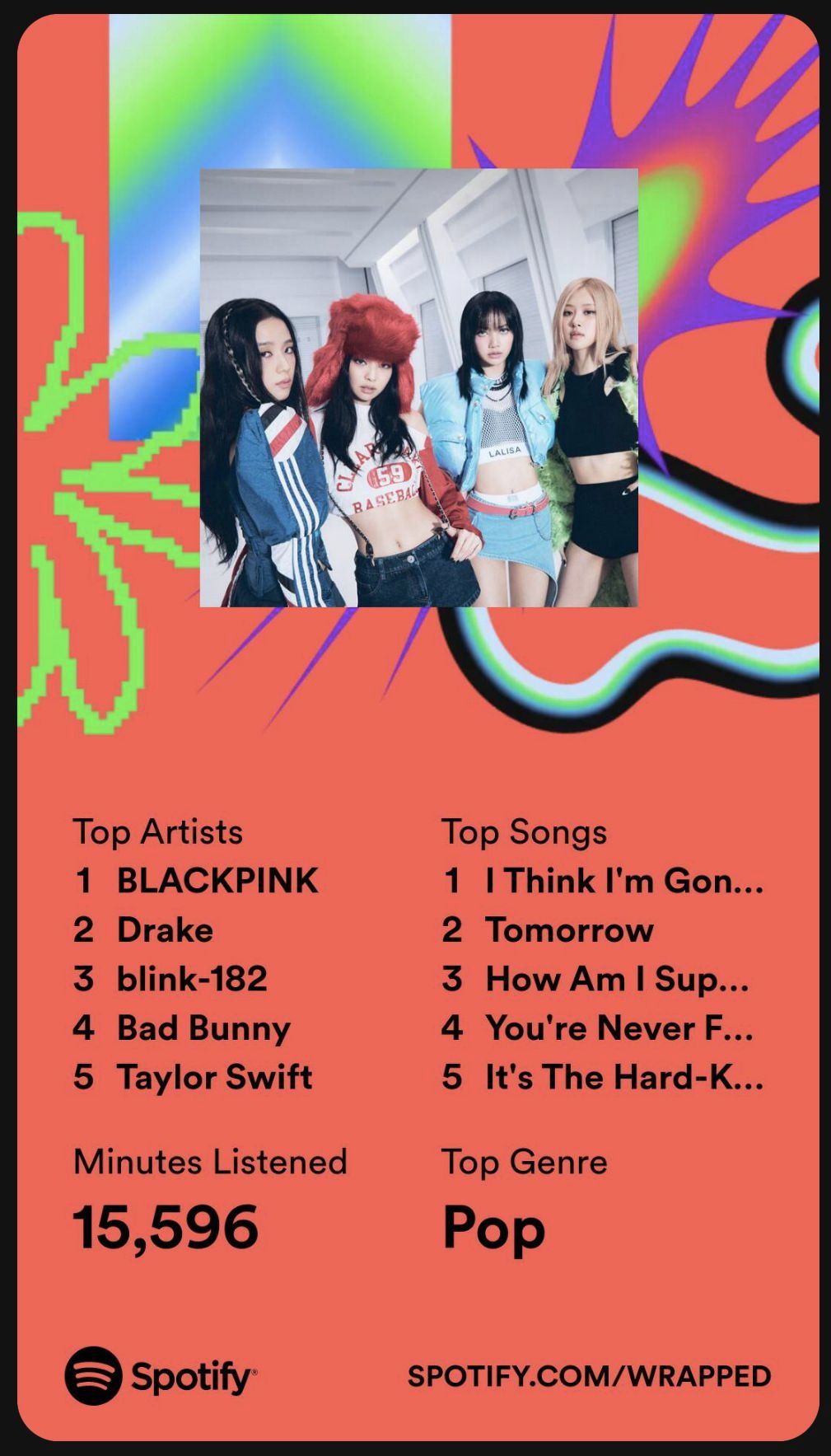 I think an early New Years resolution for me will be to try and NOT have Drake or Taylor Swift show up in my top artists lists for the year. Not to mention it’s far too common for me to wake up with Blackpink in my head and then it gets requested in the car ride to school. One day my Spotify wrapped up thing will be an actual reflection of MY musical taste.
